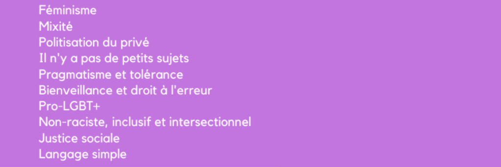 Nous avons cependant des lignes rouges infranchissables : racisme, homophobie, xénophobie, grossophobie, validisme, classisme, transphobie, méchanceté (parfois il faut dire les choses simplement !), et sexisme évidemment.